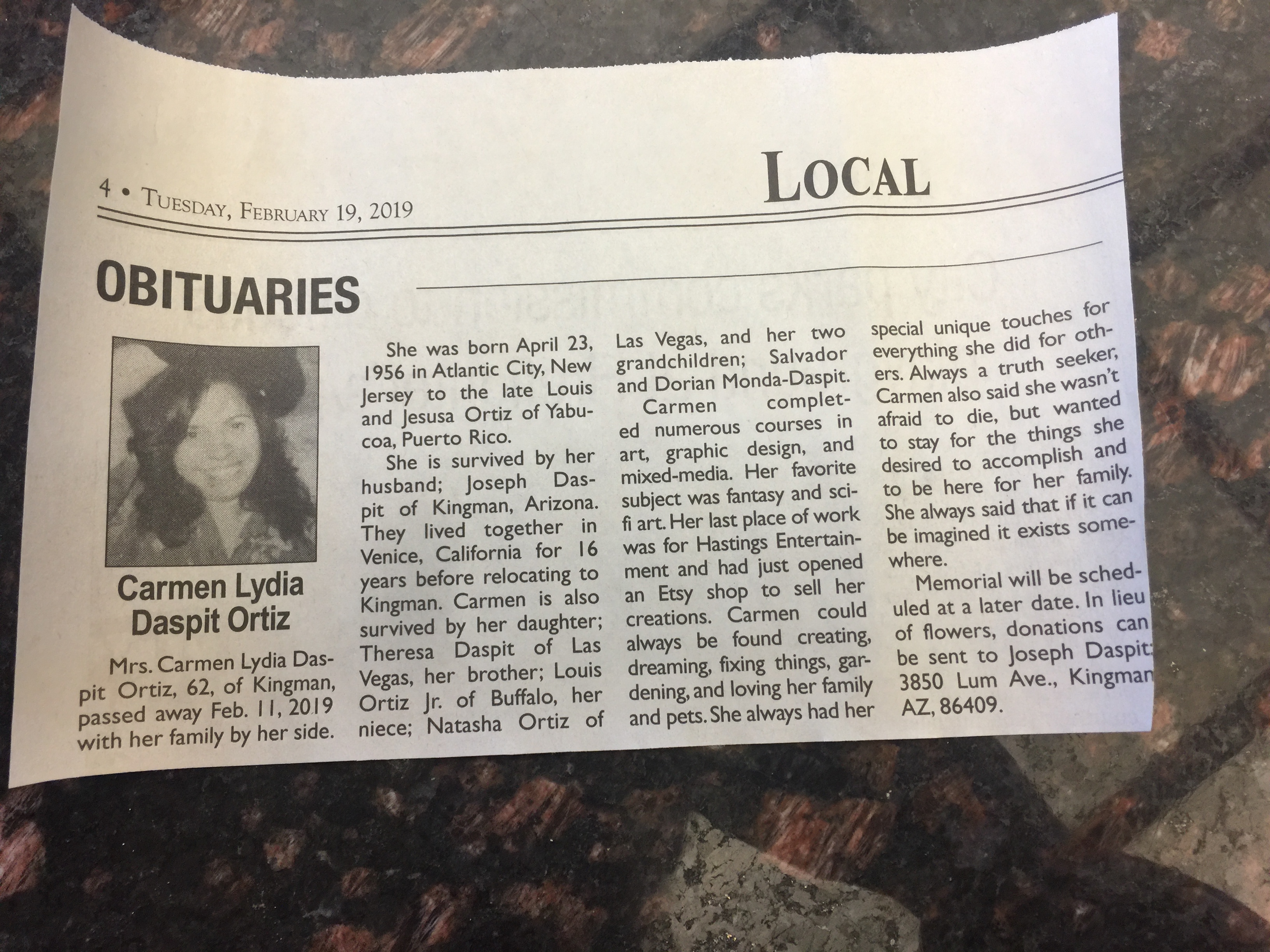 February 10th would have been my grandfathers 85th birthday and that was a hard day, not just for that reason alone. My aunt Carmen had been fighting cancer at the same time and just one day later on February 11, 2019 she passed away at home surrounded by her family. It has been an emotional month to say the least but I am handling it.